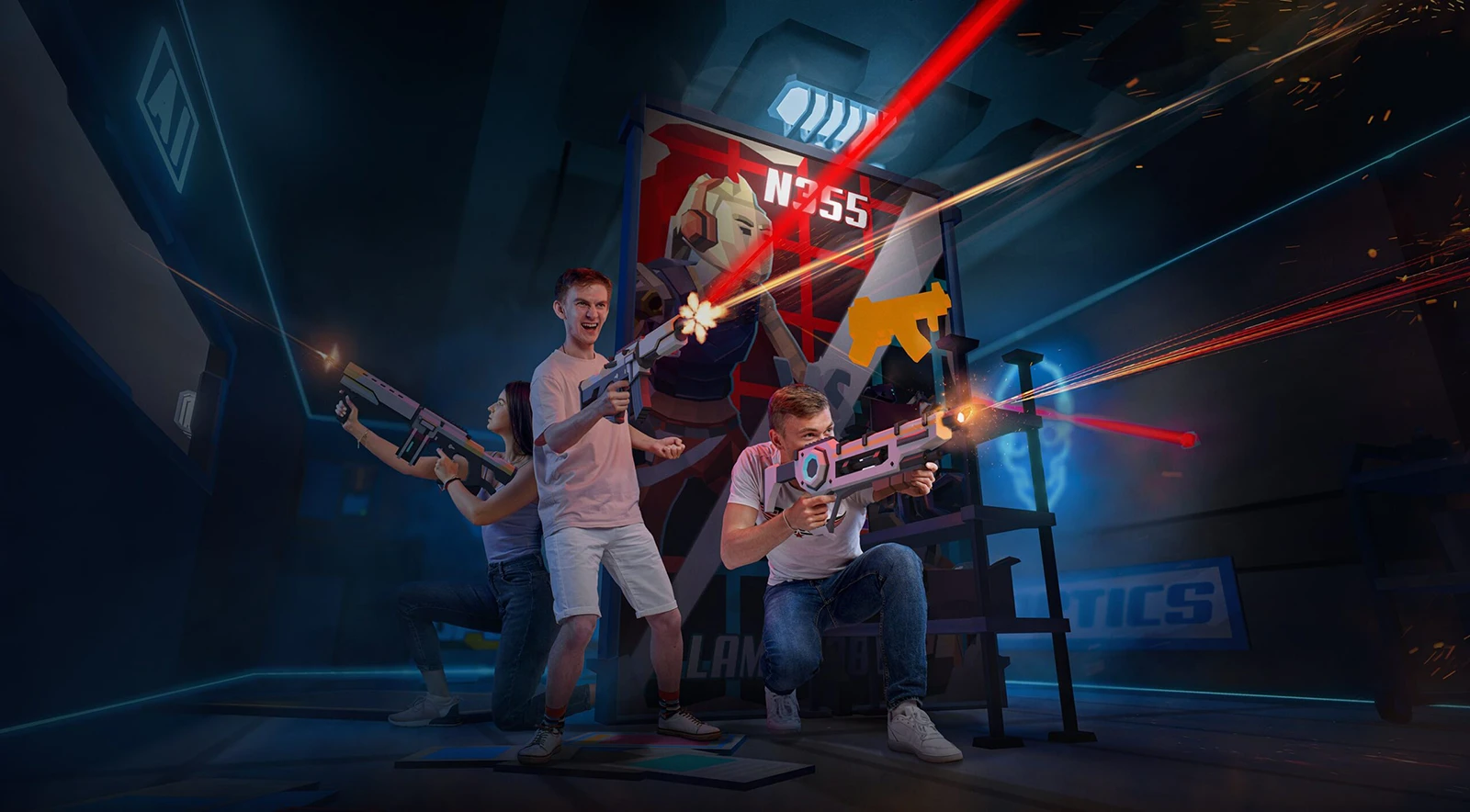 Играйте команда на команду в виртуальной реальности на арене 350 м2